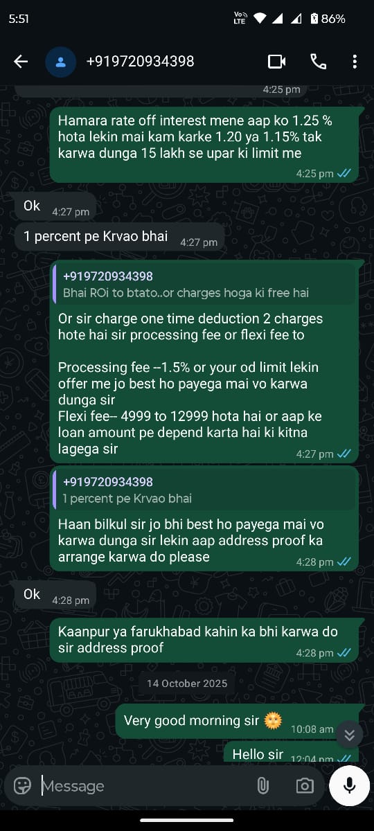 • Please dont trust this. without reading complete blog. if you see date of message its before 14th October.and I took loan on end of november it around gap of 45 days. I said ok but not show any interest becuase I dont in hurry and do not required any loan. He miss used this screenshot and defending himslef in bajaj by saying I already told customer. but this incomlete truth