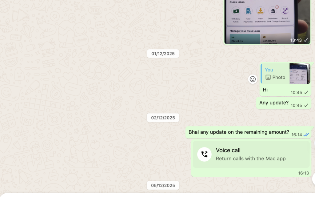 To Bajaj Finserv: I have the screenshots of his 5-month follow-up. I have the audio recording. Stop protecting the scammer and start protecting your customer.